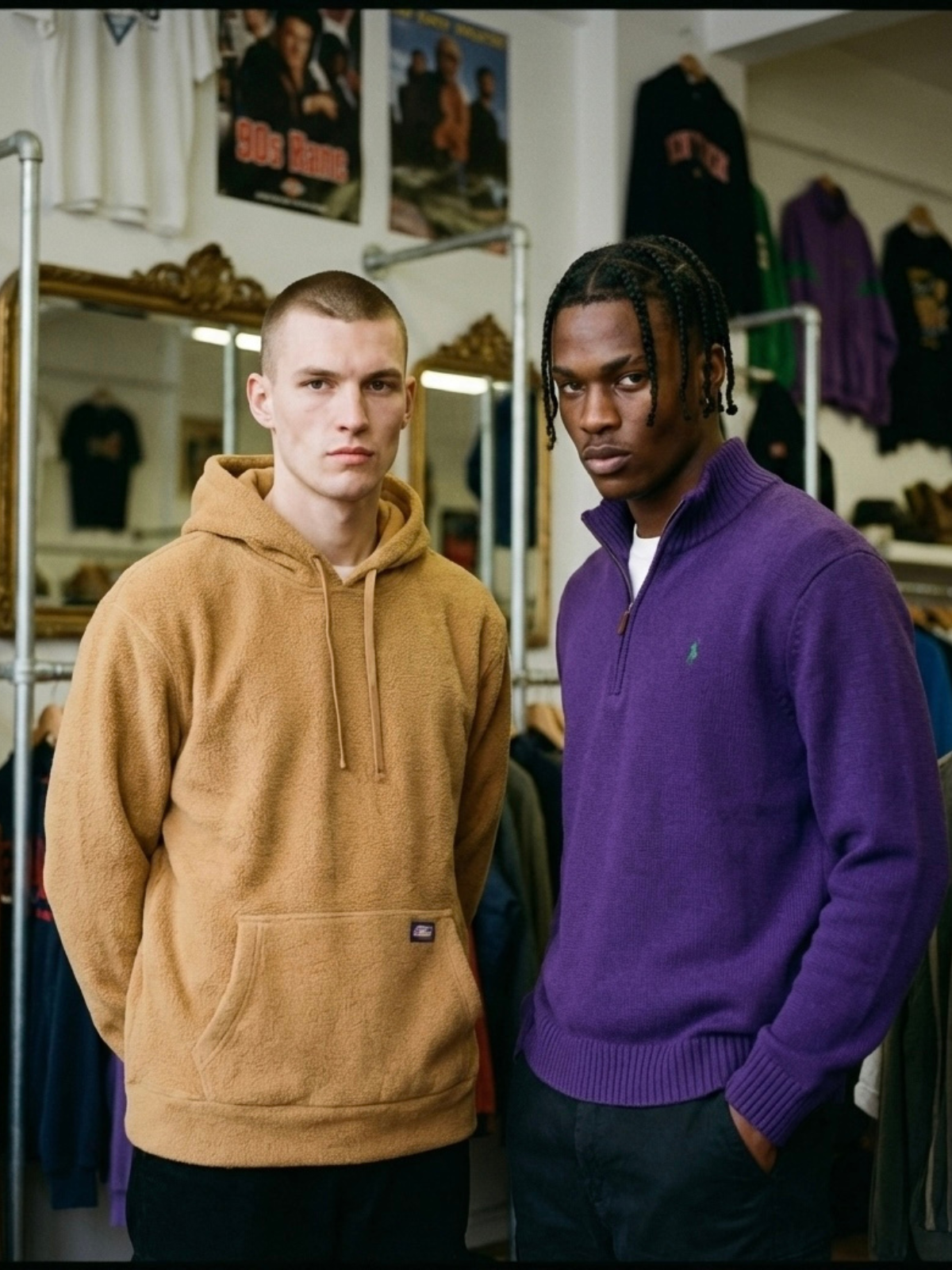 Les tailles vintage peuvent varier. C’est pourquoi nous indiquons les mesures exactes de chaque pièce (largeur, longueur, épaules). Nous recommandons de comparer avec un vêtement que vous possédez déjà.