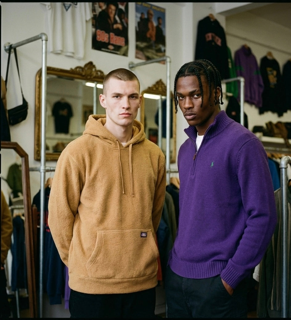 Chaque pièce est inspecté une par une. L’état est clairement indiqué sur la fiche produit (excellent, très bon, bon). Les éventuelles marques du temps font partie de l’histoire du vêtement et sont toujours mentionnées.